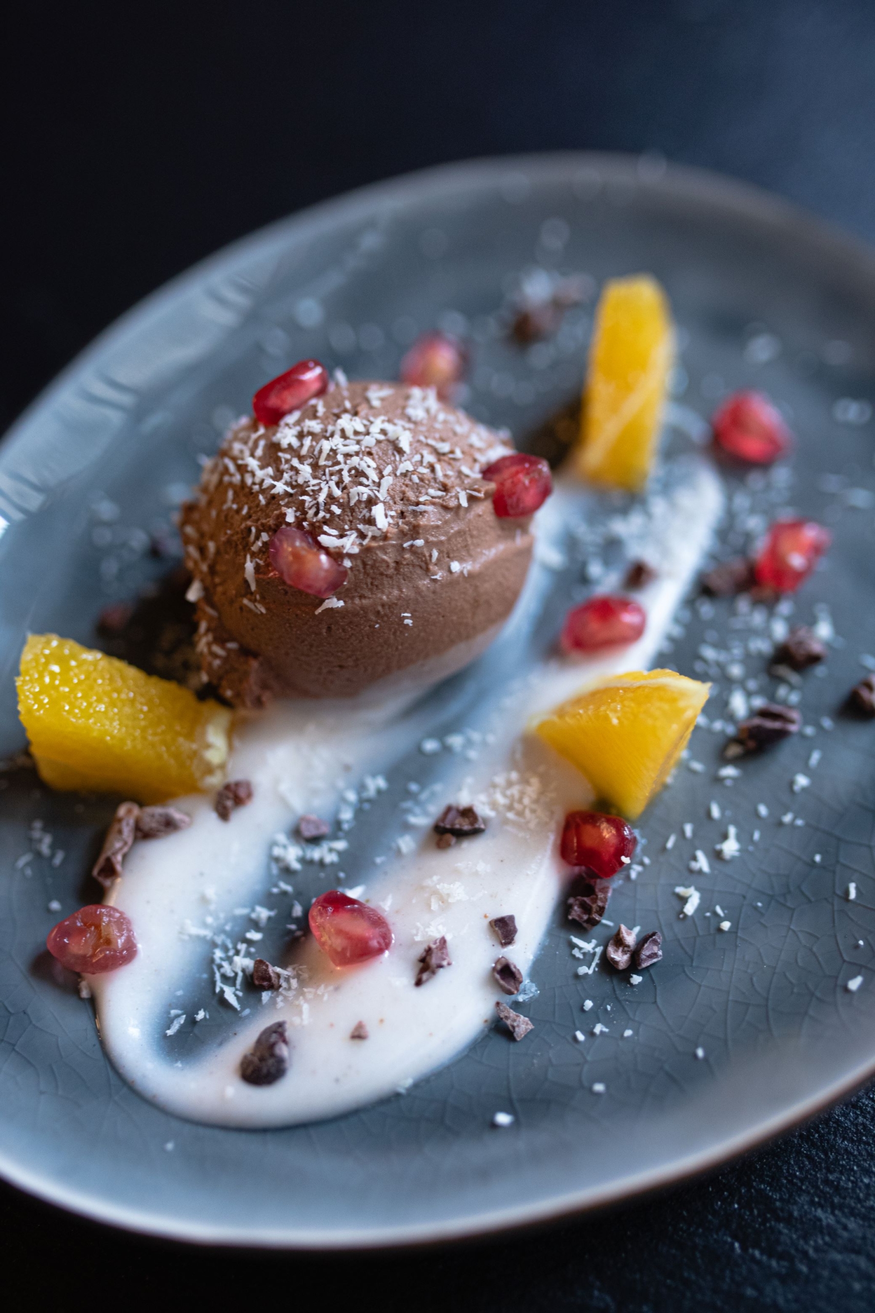 Im Kühli hält sich der vegane Bio-Weihnachtsbraten ungebacken noch mindestens drei Tage, genau wie die Soße und alle anderen Beilagen. Das Schoko-Mousse hält sich mindestens eine Woche im Kühli.